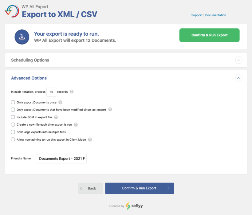- You can now click one of the Confirm & Run Export buttons to run the export.