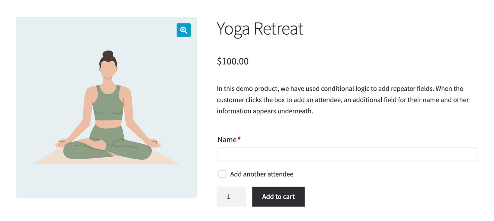 Repeater fields in WooCommerce are extra product options which the customer can duplicate in order to add more and more of the same type of option.