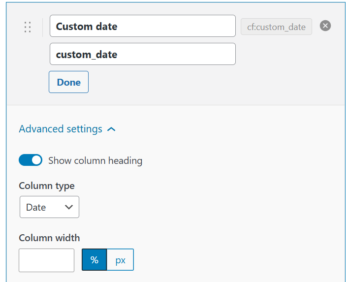The Date column option lets you designate specific columns in your table as dates, so that the column can be sorted by date correctly. This can be useful for custom fields or taxonomies which contain dates, as otherwise they will be sorted alphabetically instead of by date.