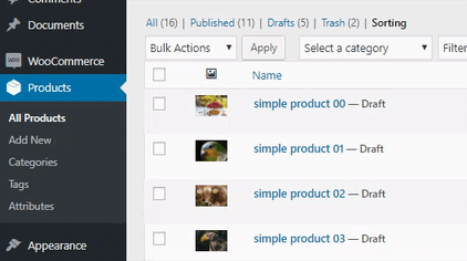 WooCommerce Product Table comes with 2 options for sorting the table when it first loads. Once the table has loaded, customers can click on a column heading to sort by that column. For more information, read our full guide to product sorting in WooCommerce.